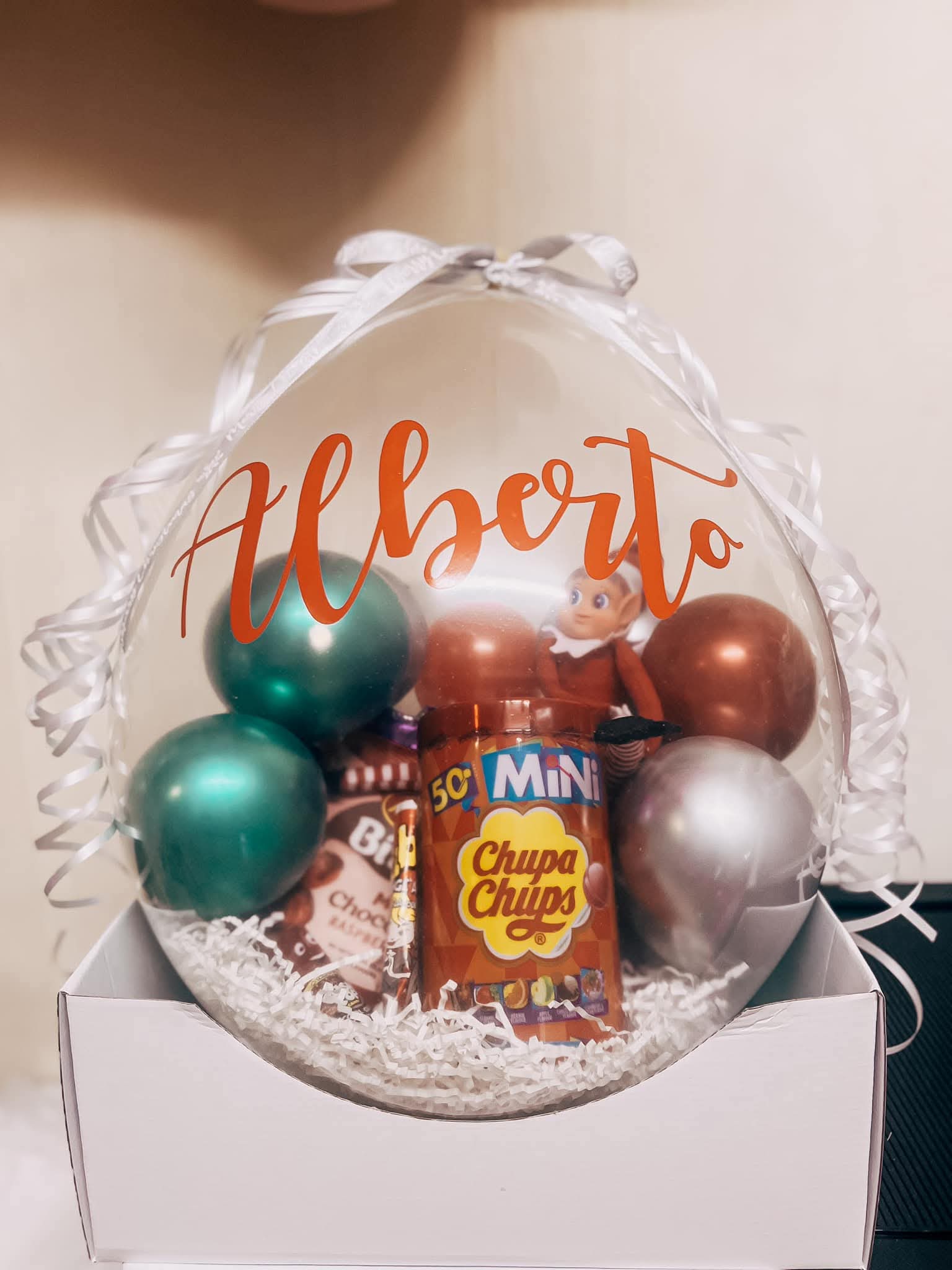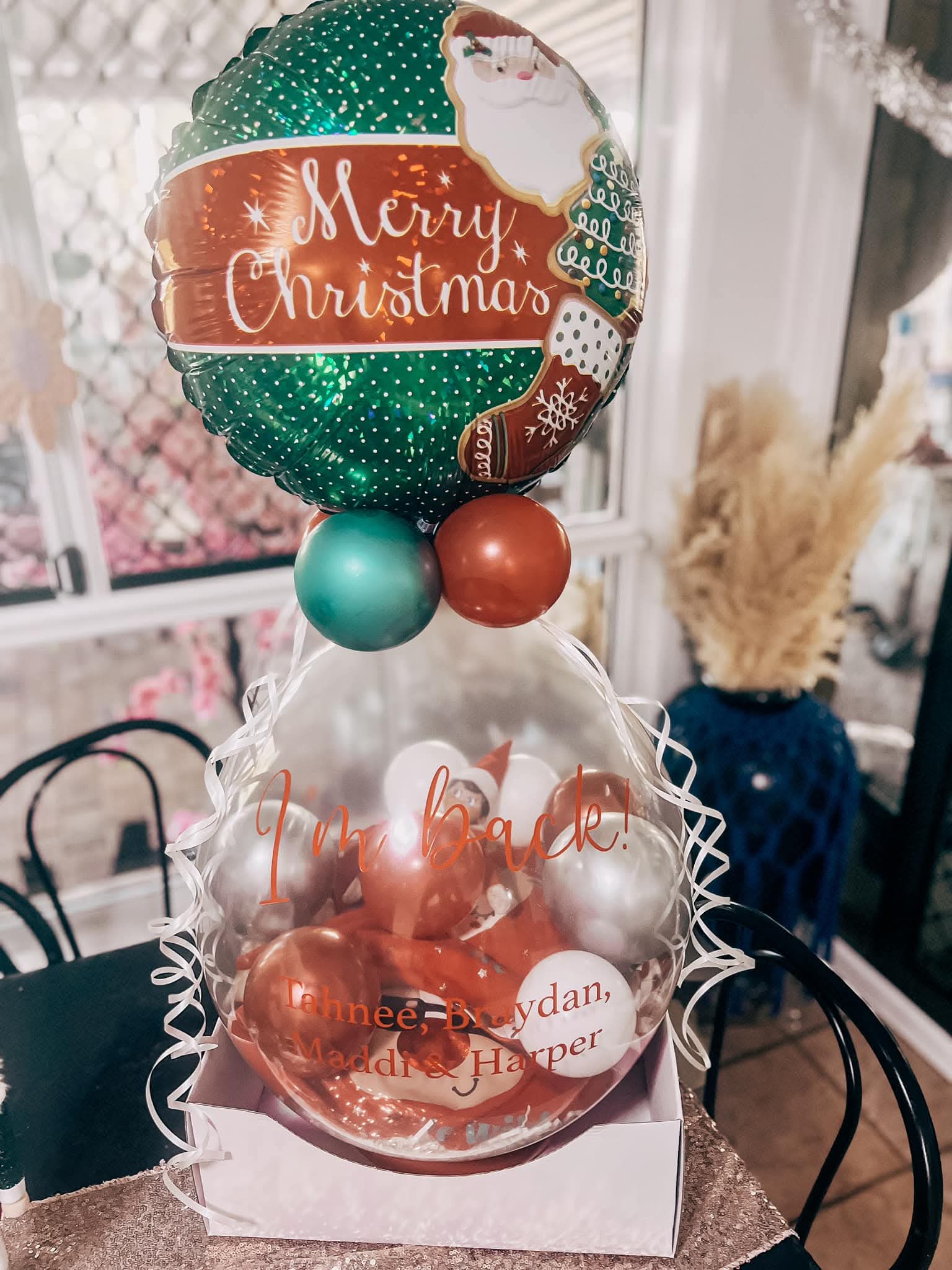 Custom Vinyl Decal: Personalised text on the front of the balloon (e.g., "Guess Who's Back!" or your elf's name and "I'm Here!").