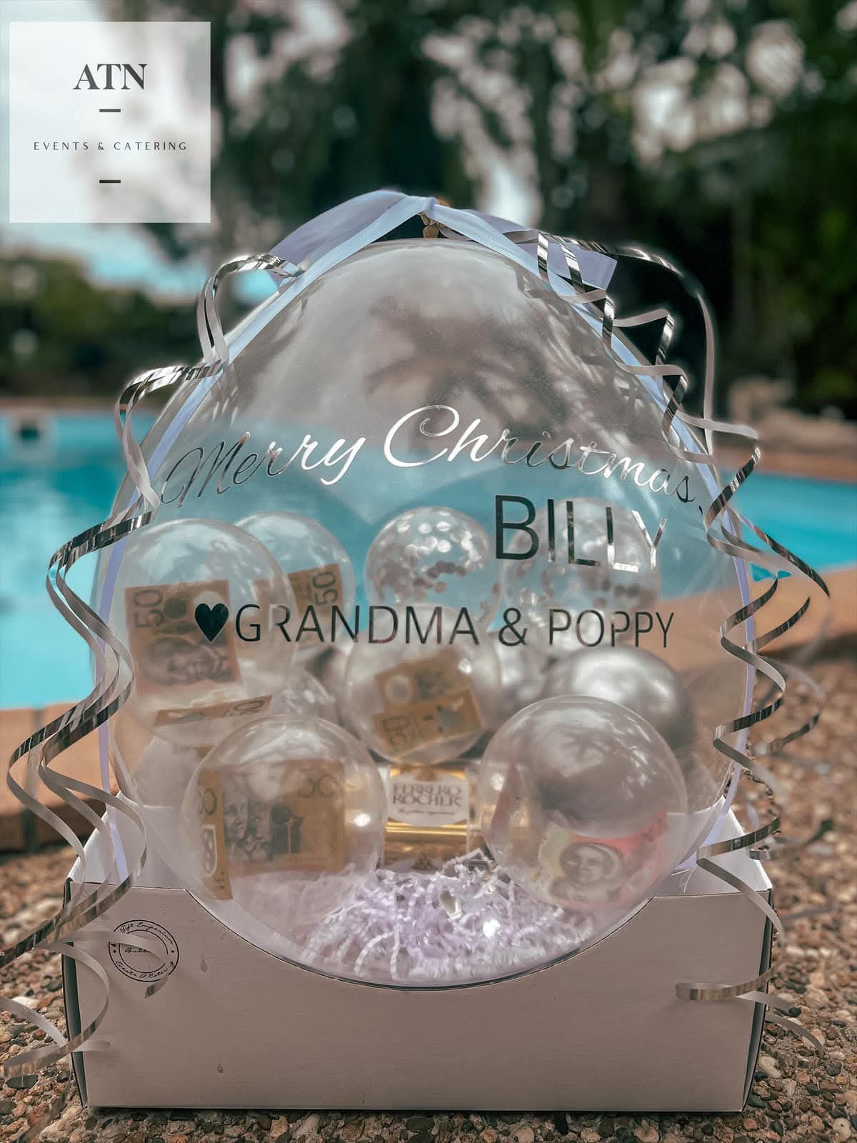 Christmas Balloon Topper: Finished with either a classic Christmas latex balloon cluster or a foil shape topper (e.g., star, candy cane, snowflake).