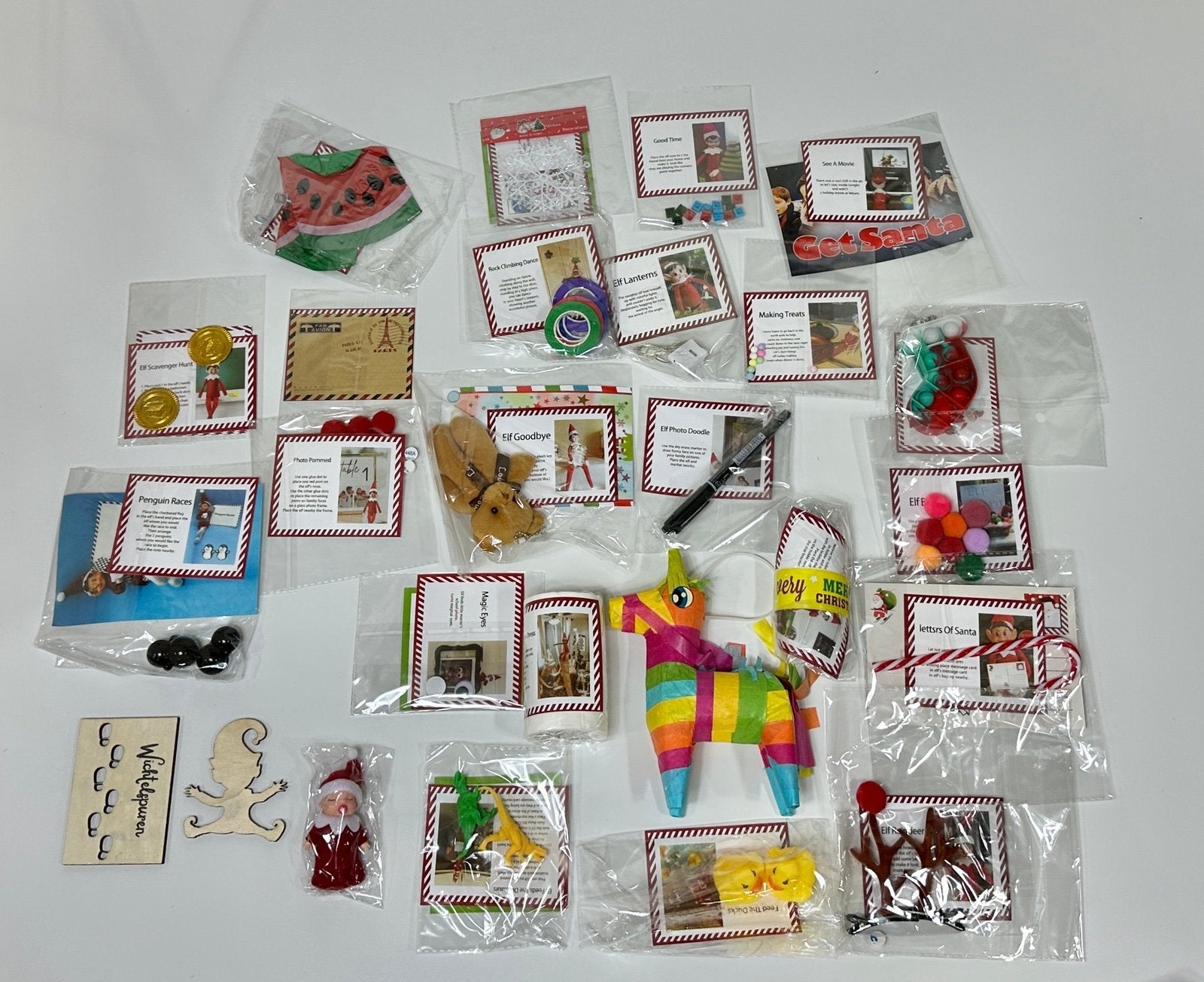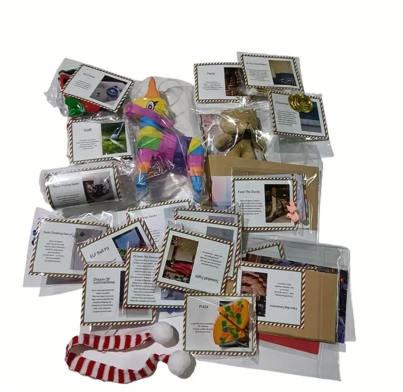 The Elf Adventure/Mischief Kit (Inside!): This is the key component! A sealed kit containing props, activity cards, and easy-to-follow ideas for 24 days of simple elf antics. This means you have a full month of mischief planned without any extra trips to the store!