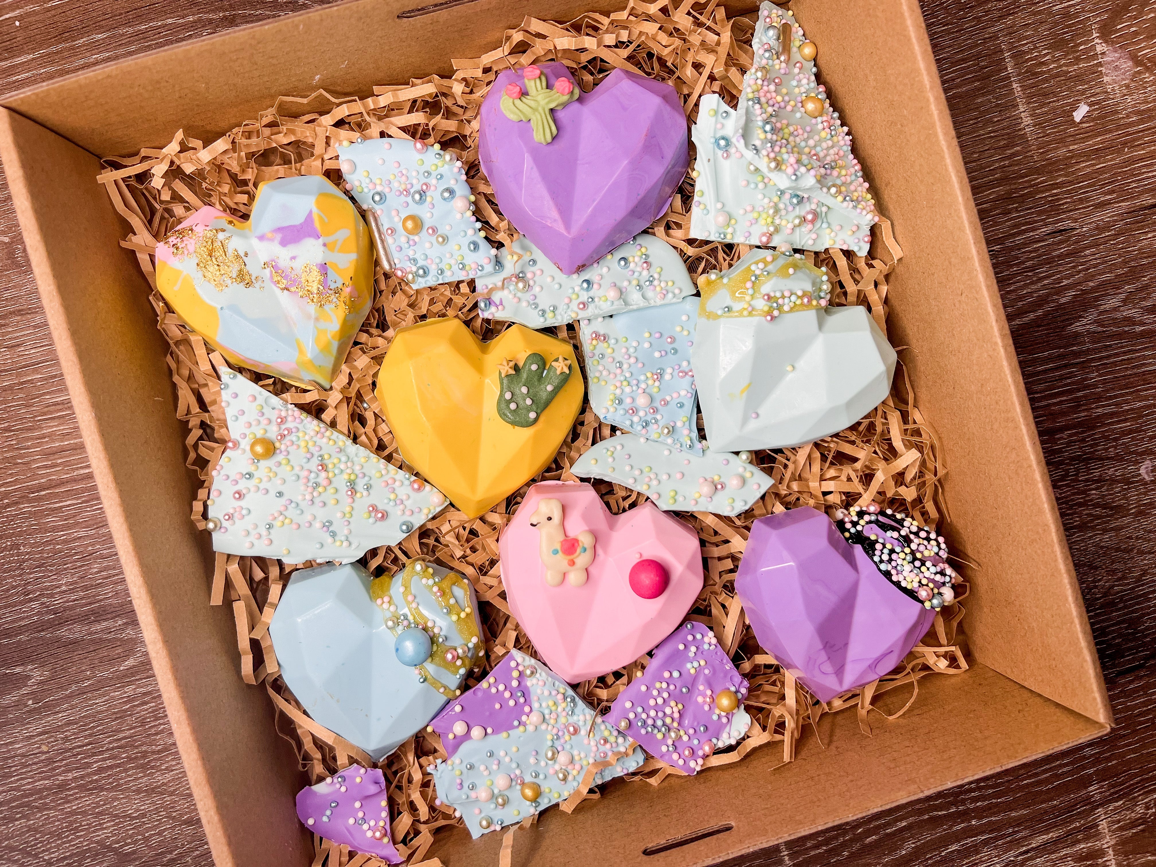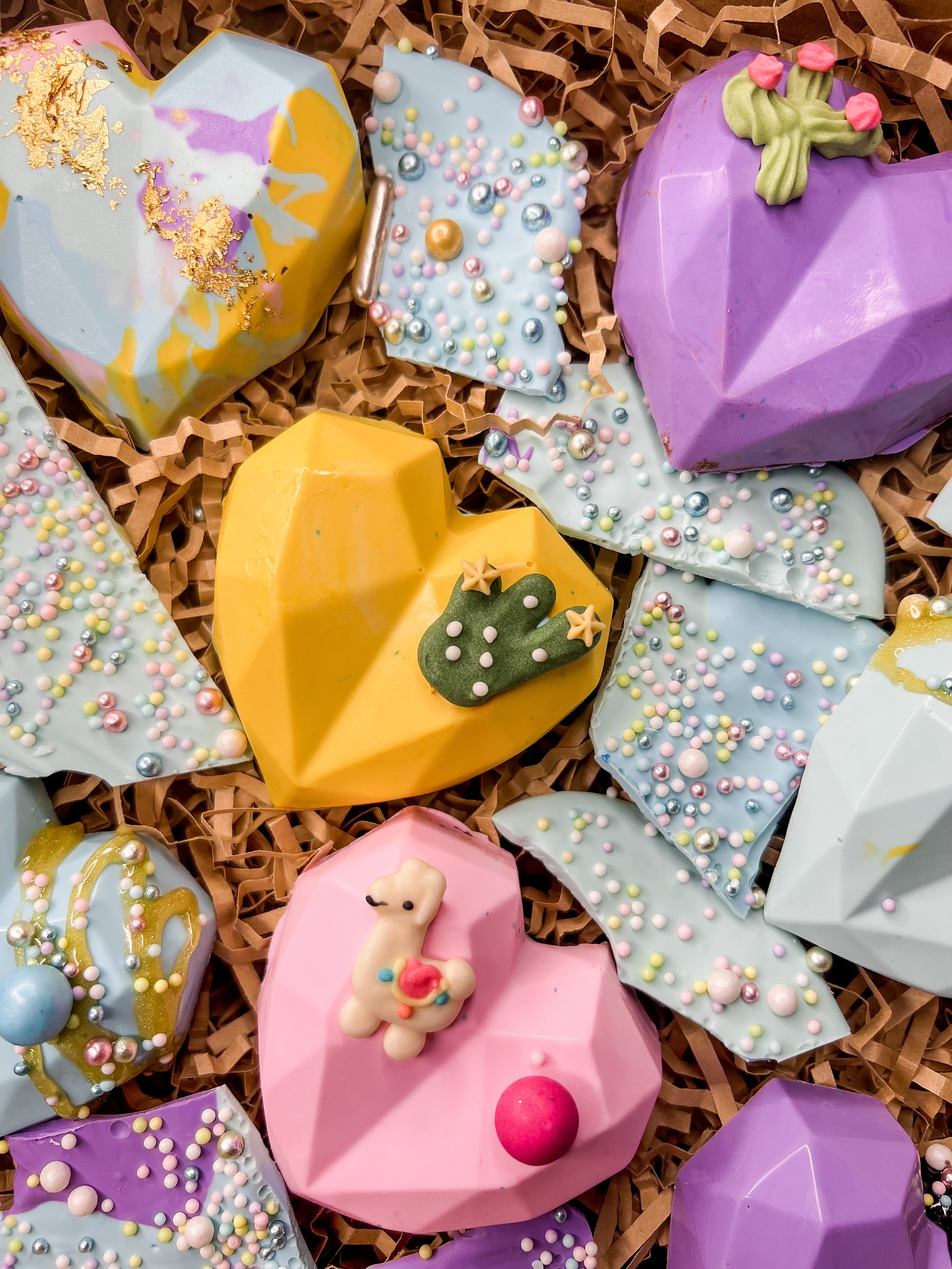 Mini Geo Chocolate Cake heart + choc shards pack - gift add on Mini Geo Chocolate Cake heart + choc shards pack - gift add on Product form Add on mini solid geo chocolate hearts + shards of handmade chocolate. Read more$30.00 Add Mini Geo hearts+Choc shards Yes No Quantity Add to cart This item is a recurring or deferred purchase. By continuing, I agree to the cancellation policy and authorize you to charge my payment method at the prices, frequency and dates listed on this page until my order is fulfilled or I cancel, if permitted. Pairs well with
